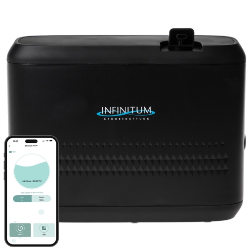 - Steuerung per App für individuelle Raumbeduftung: Wochentag / 5 Tagesprogramme / 10 Intensitätsstufen