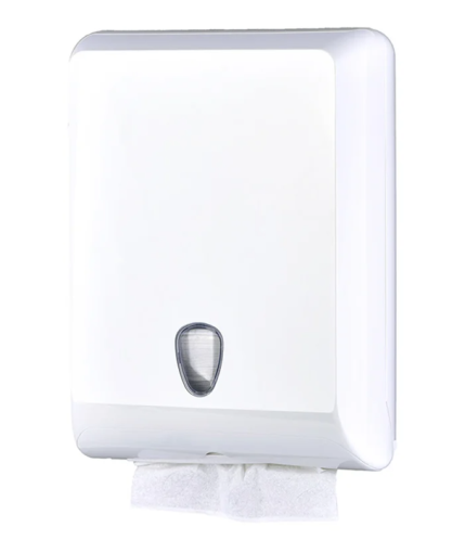 Der Spender für Handtuchpapier, das mit 'Z', 'V' und 'C' bestückt werden kann. Praktisches und sauberes Design gewährleistet Qualität und Ästhetik in jeder Umgebung.