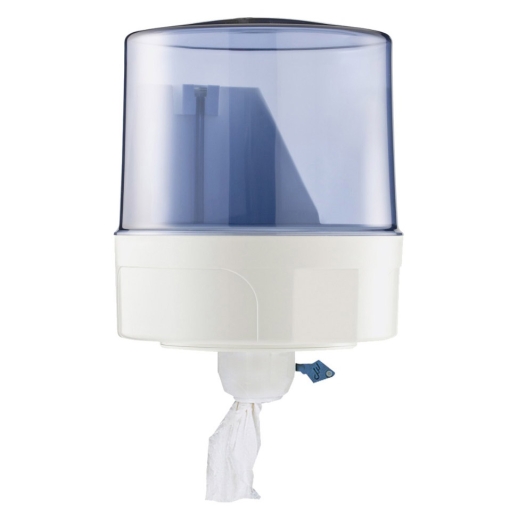 Das Papier kann ganz einfach durch einen Trichter für perforiertes Papier nach unten herausgezogen und abgerissen werden. Für die flexible, auch einhändige Entnahme per Innenabrollung zur Oberflächen- oder Handreinigung geeignet für Rollen bis max.24.5 cm Durchmesser.